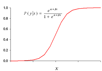 $$ \pi = Pr(Y=1|X=x) = \frac{e^{\beta_0+\beta_1x}}{1 + e^{\beta_0+\beta_1x}} $$